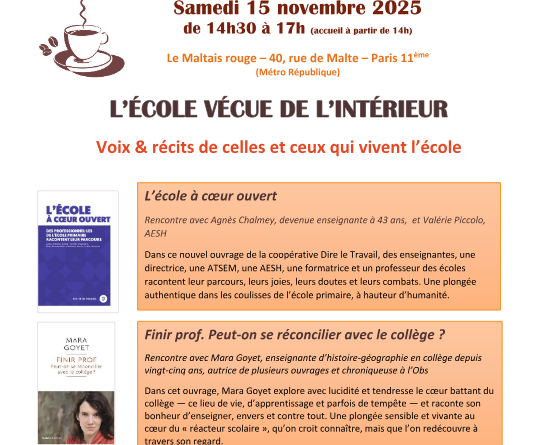 CAFÉ DU TRAVAIL Autour de l’école Samedi 15 novembre 2025 de 14h30 à 17h