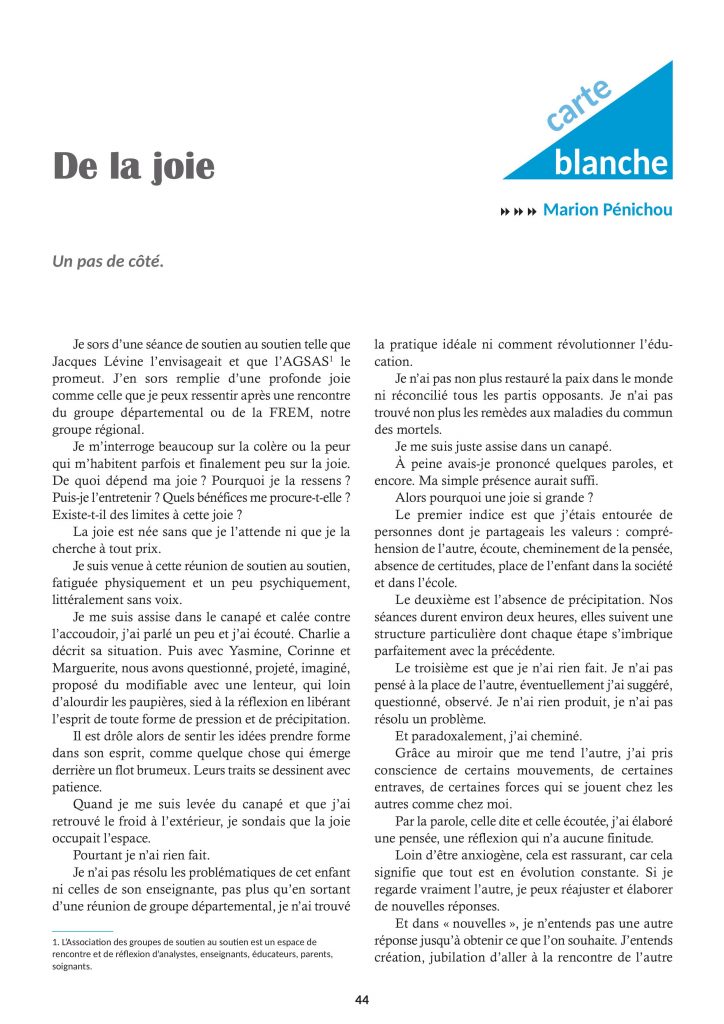 Cette semaine : « De la joie» de Marion Penichou, paru dans le numéro 272 (avril 2025).