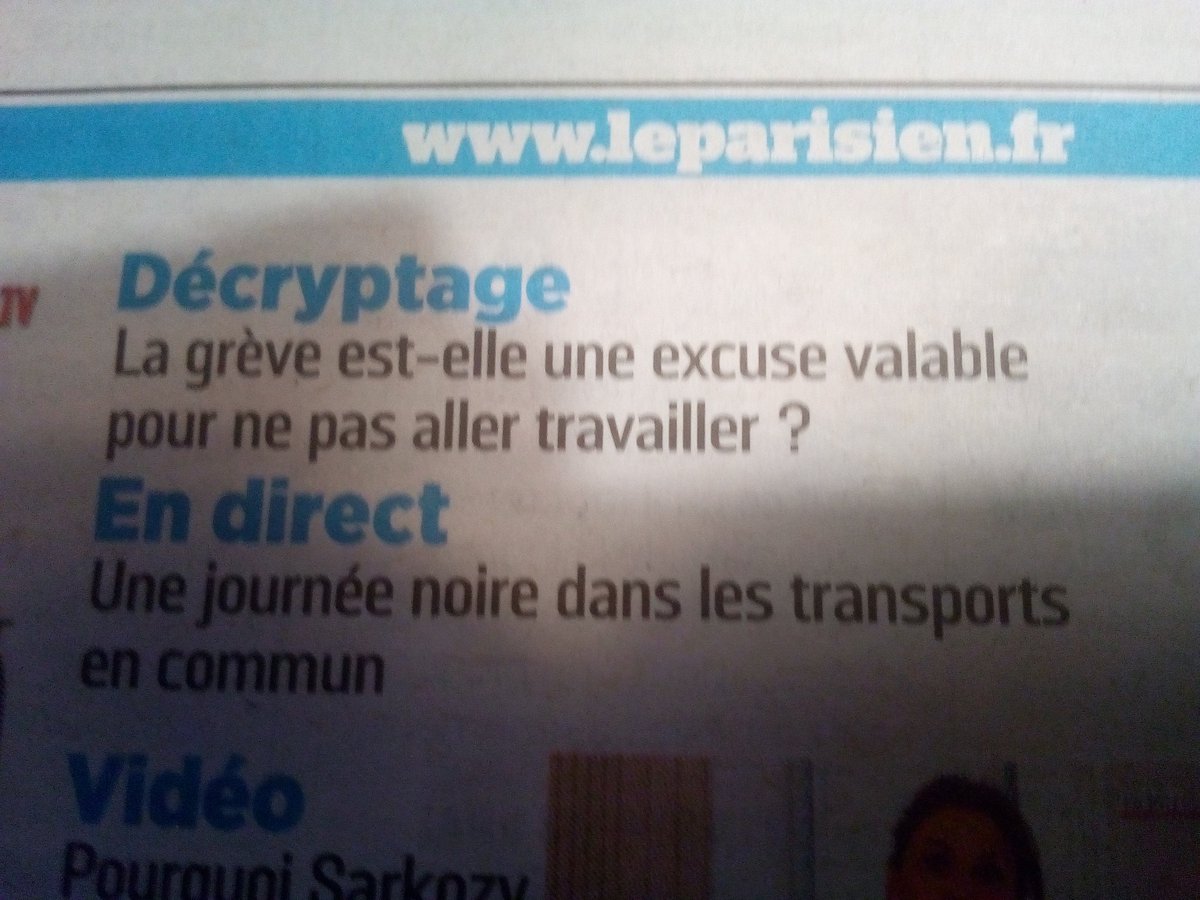 « – Tu fais grève demain ? Moi oui. Et j’aimerais bien aller en manif, par exemple à Paris mais de chez moi, c’est galère, et en plus avec la grève des transports…