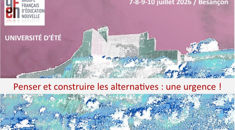 Sommes-nous dans un « film catastrophe » ?Les guerres, l’explosion des inégalités sociales et des discriminations, l’emprise des technologies, de l’IA, la désinformation, le développement de la haine de la démocratie, le repli sur soi et la peur de l’autre, le dérèglement climatique et l’effondrement de la biodiversité : Tout cela est-il inéluctable ? « There is no alternative ! » Ce slogan néo-libéral connaît une postérité éblouissante – pour ne pas dire aveuglante. Aujourd’hui, c’est la formule magique utilisée par ceux qui se pensent les plus puissants pour verrouiller tout débat afin d’imposer leurs visions du monde au mépris des réalités tant politiques, sociales qu’écologiques qui deviennent pourtant explosives. Sommes-nous condamnés à la guerre des récits ? Devrions-nous nous résigner aux renversements de valeurs que cette affirmation autorise en s’appuyant sur toutes les formes de violence possibles ? Osons le contrepied. Les alternatives sont possibles ! Les chercher, participer à leur construction, faire en sorte qu’elles s’incarnent concrètement dans un nouveau monde et une nouvelle humanité à inventer : de longue date le Groupe Français d’Education Nouvelle fait le pari qu’un autre monde est possible. « Tous capables ! » « Tous chercheurs, tous créateurs ! » À l’heure où les périls s’accumulent, il nous semble indispensable de faire à nouveau ce pari, de se remettre au travail collectivement pour participer aux ruptures plus que jamais urgentes. Et ces ruptures ne pourront se faire qu’en se donnant des outils pour les rendre possible : construire une lecture plus juste du réel ; construire ou redécouvrir les moyens d’action à portée de nos mains nous permettant de faire autrement. Voilà l’enjeu de l’Université d’été du GFEN – rien de moins !Cette Université d’Été se déroulera sur 4 jours, du 7 au 10 juillet 2026, et chacune des journées sera articulée autour d’une question vive. Elle sera précédée d’une pré-université le 6 juillet.